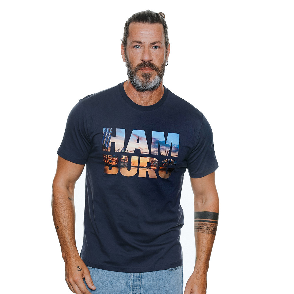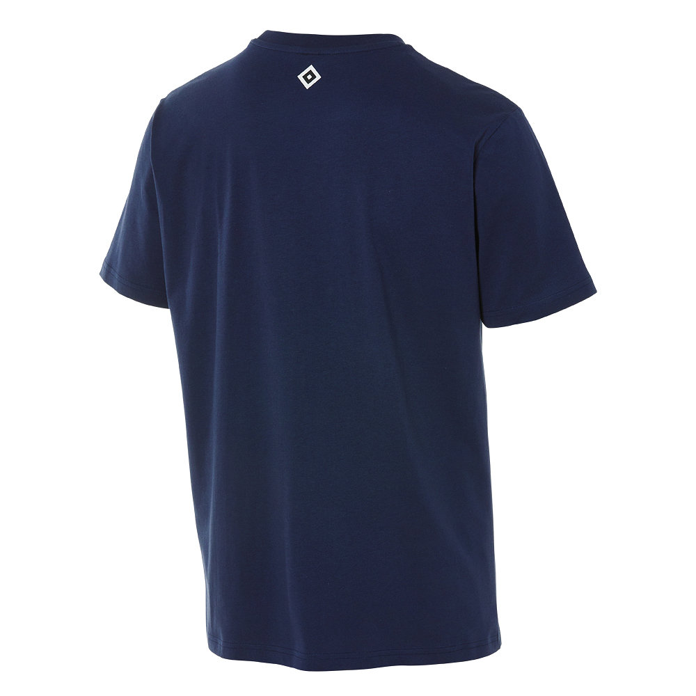 Das blaue T-Shirt „Samo“ mit großem „Hamburg“-Schriftzug mit atemberaubenden Hafen-Motiv zieht alle Blicke auf sich und zeigt die Verbundenheit des Vereins mit der Hansestadt. Abgerundet wird das Shirt durch eine HSV-Raute im Nacken.