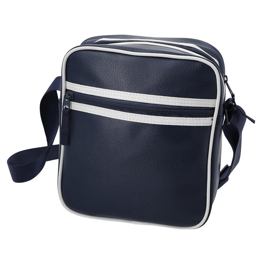 Egal ob auf dem Weg ins Volksparkstadion oder im Alltag: Mit der Tasche „Retro“ vom HSV hast du deine Habseligkeiten immer dabei und trägst deinen Verein bei dir. Die dunkelblaue Retro-Umhängetasche mit weißen Kontrasten und großem HSV-Schriftzug auf der Vorderseite überzeugt durch ein großes Hauptfach und zwei zusätzlichen Außentaschen für Kleinigkeiten. Der verstellbare Schultergurt sorgt für optimalen Tragekomfort.
