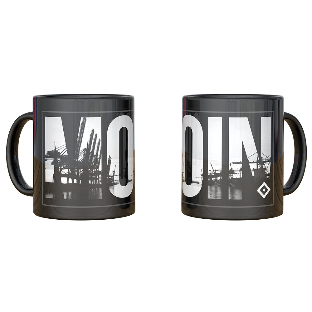 Mit der schwarzen Tasse „Bosse“ vom HSV startest du gut gelaunt in den Tag! Das Besondere an der Tasse ist der MOIN Schriftzug mit Fotoprint mit Hamburg Wahrzeichen und HSV-Raute.