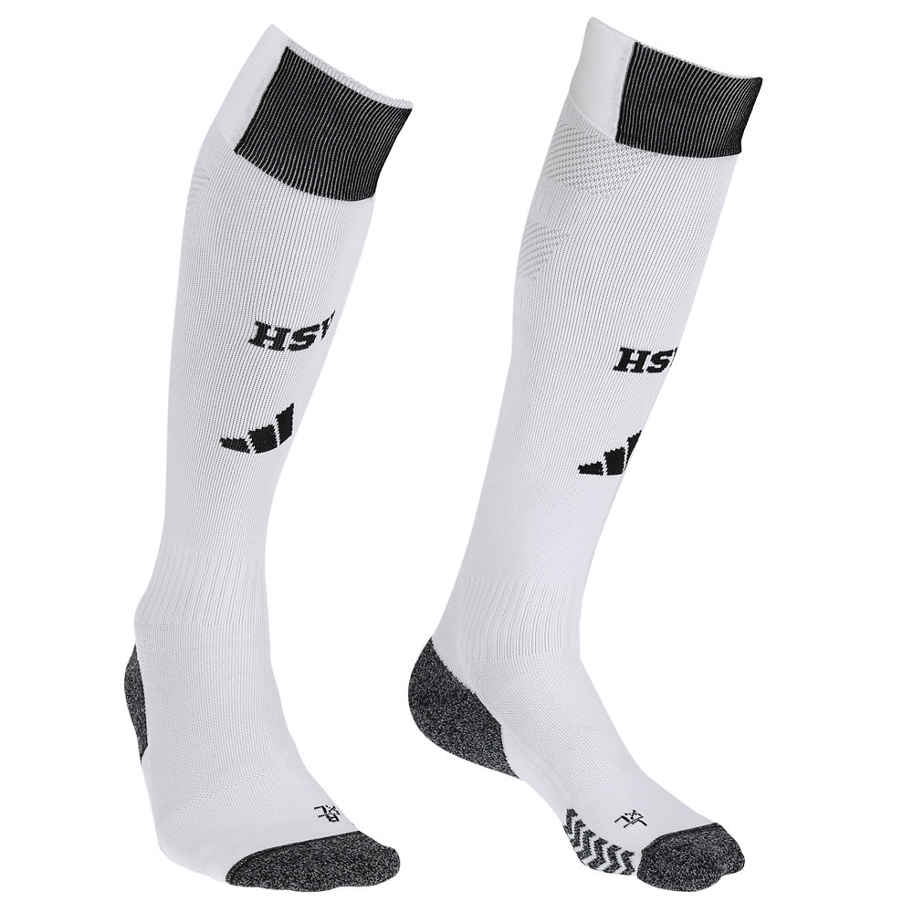 Mach dein Trikotoutfit der Saison 2025/26 mit den adidas Auswärtsstutzen perfekt! Die weißen Stutzen mit dem klassischen schwarz-weißen Ringel am Bündchen: Das ist der HSV! Die Auswärtsstutzen sind am Mittelfuß extra verstärkt für einen besonders hohen Tragekomfort.
