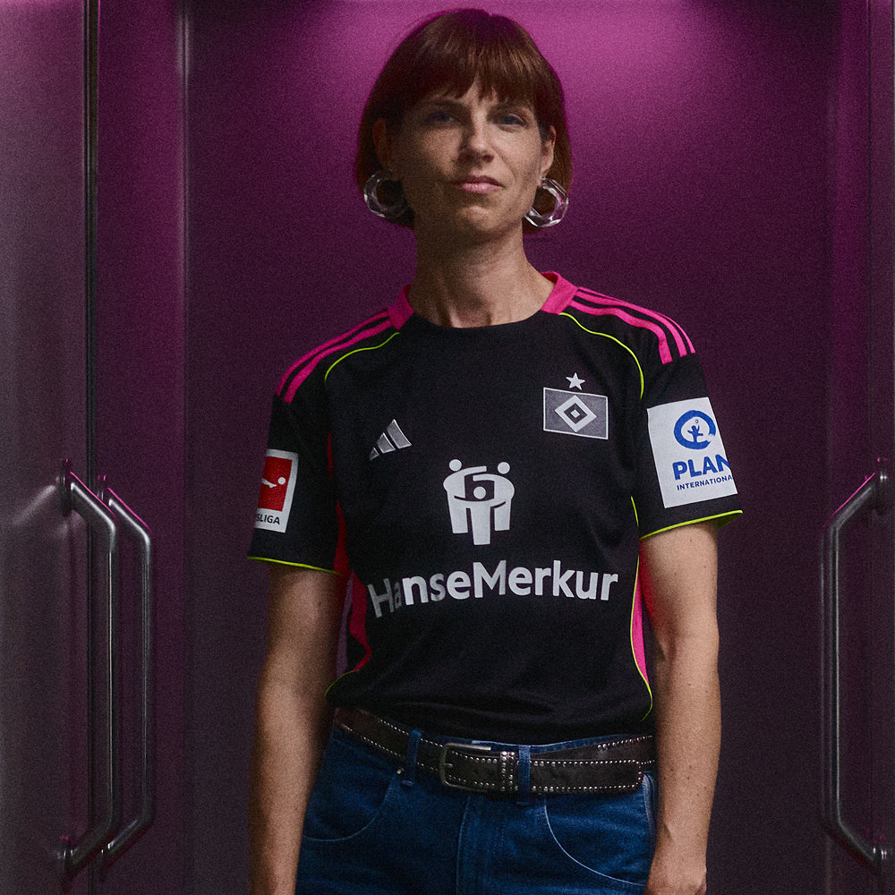 Jung, mutig und erfrischend anders: Das neue adidas Damen Ausweichtrikot soll Brücken schlagen zwischen Menschen und Generationen, zwischen Vergangenheit und Zukunft. Das schwarze Damentrikot mit auffälligen neon-pinken Akzenten und einem seitlichen Streifen in Neon-Gelb spiegelt die Energie der jungen Generation wider und verleihen dem Design eine klare, zeitgemäße Handschrift. Inspiriert von früheren Trikots bringt der neue Look frische Impulse auf und neben dem Platz.