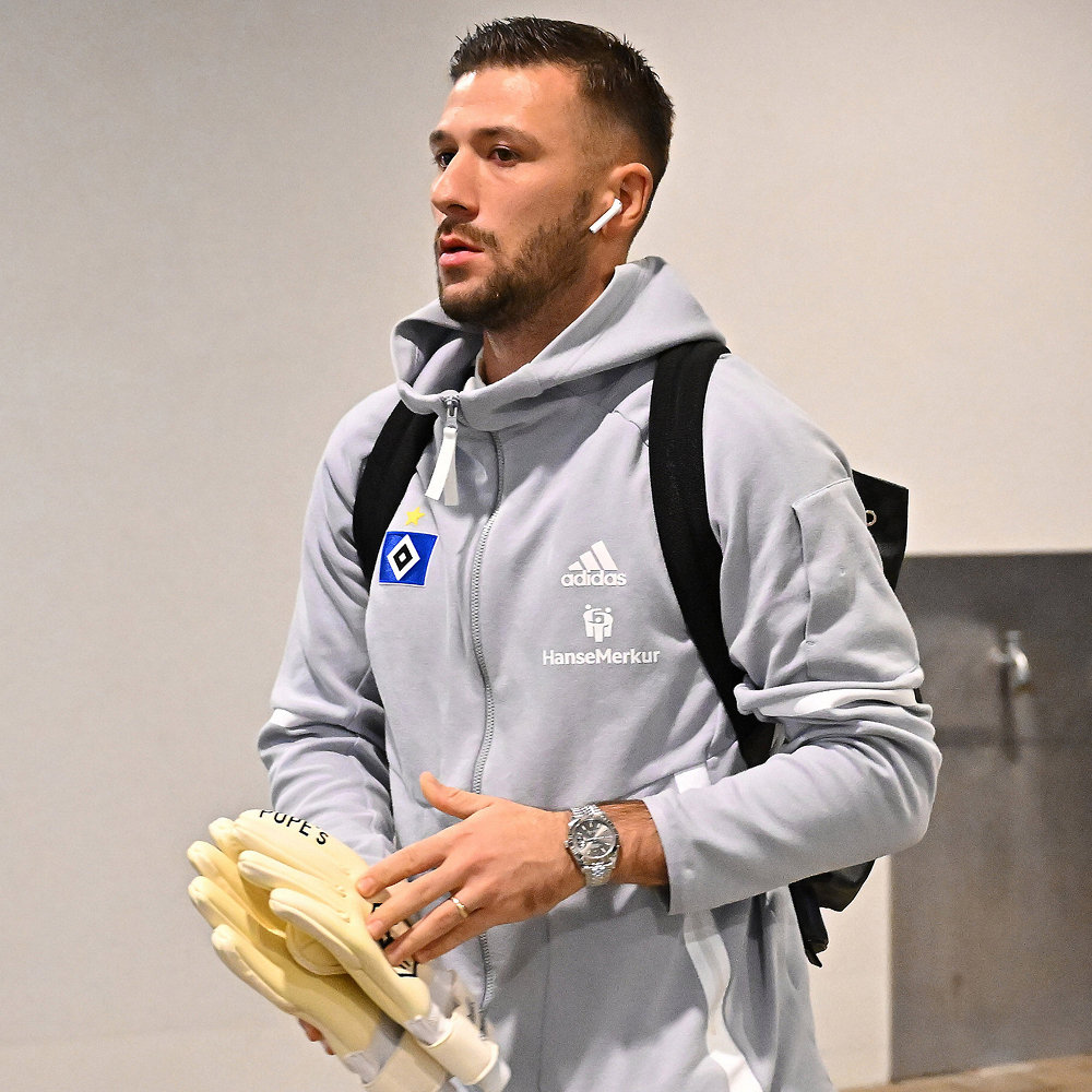 Die graue adidas Präsentationsjacke 22/23 mit Sponsoren auf der linken Brust und auf der Rückseite wurde von unserer Nummer 1 in der Saison 22/23 getragen. Auf dem Care Label wurde von unserem Zeugwart die Nummer 1 draufgeschrieben.