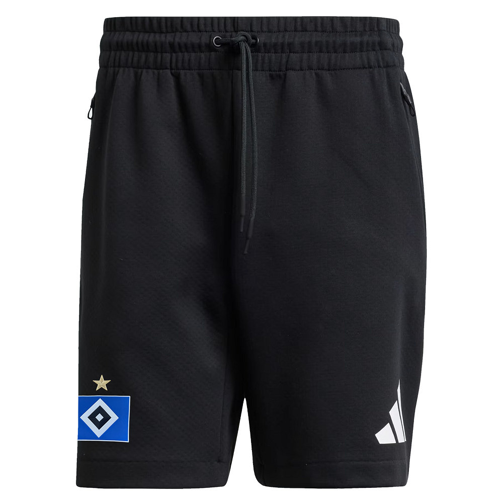 Mit der schwarzen adidas Präsentationsshorts 25/26 kannst du dich kleiden wie ein HSV-Profi! Die kurze Hose mit HSV-Raute auf dem rechten Hosenbein und adidas-Logo auf dem linken Hosenbein zeigt ganz klar, für welchen Verein dein Herz schlägt.