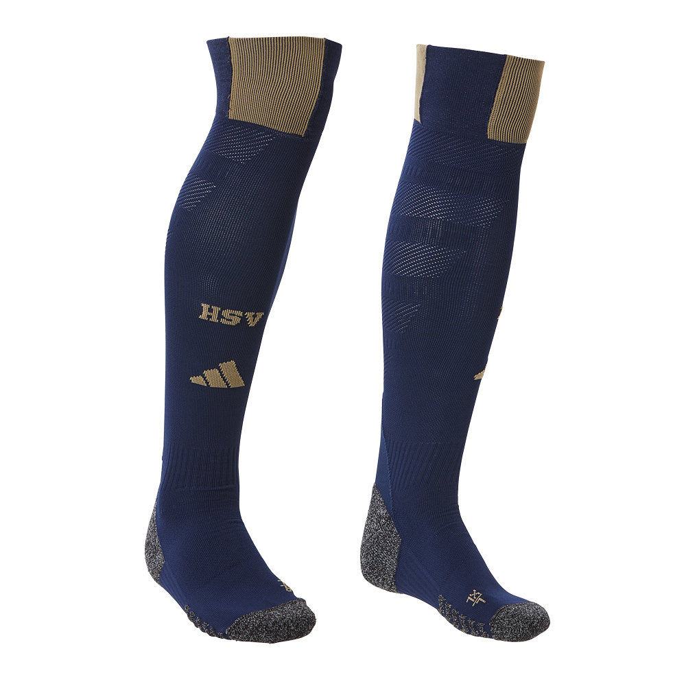 Mach dein Sondertrikot-Outfit mit den dunkelblauen Sonderstutzen „1887 Bundesligaspielen“ perfekt. Die Stutzen mit den klassischen dunkelblau-goldenen Ringel am Bündchen werden durch einen goldenen HSV-Schriftzug und adidas-Logo vorne abgerundet.