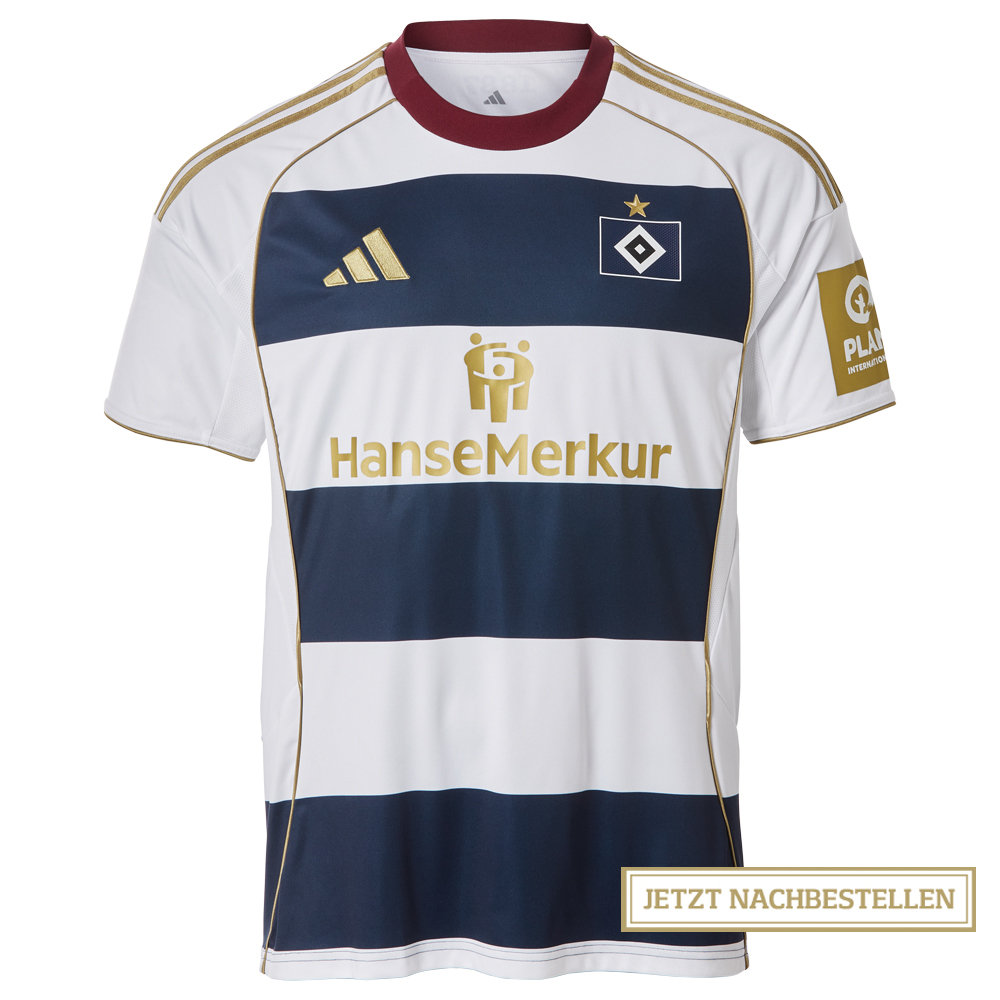 • Blaue HSV-Raute mit Meisterstern und adidas-Logo auf der Brust