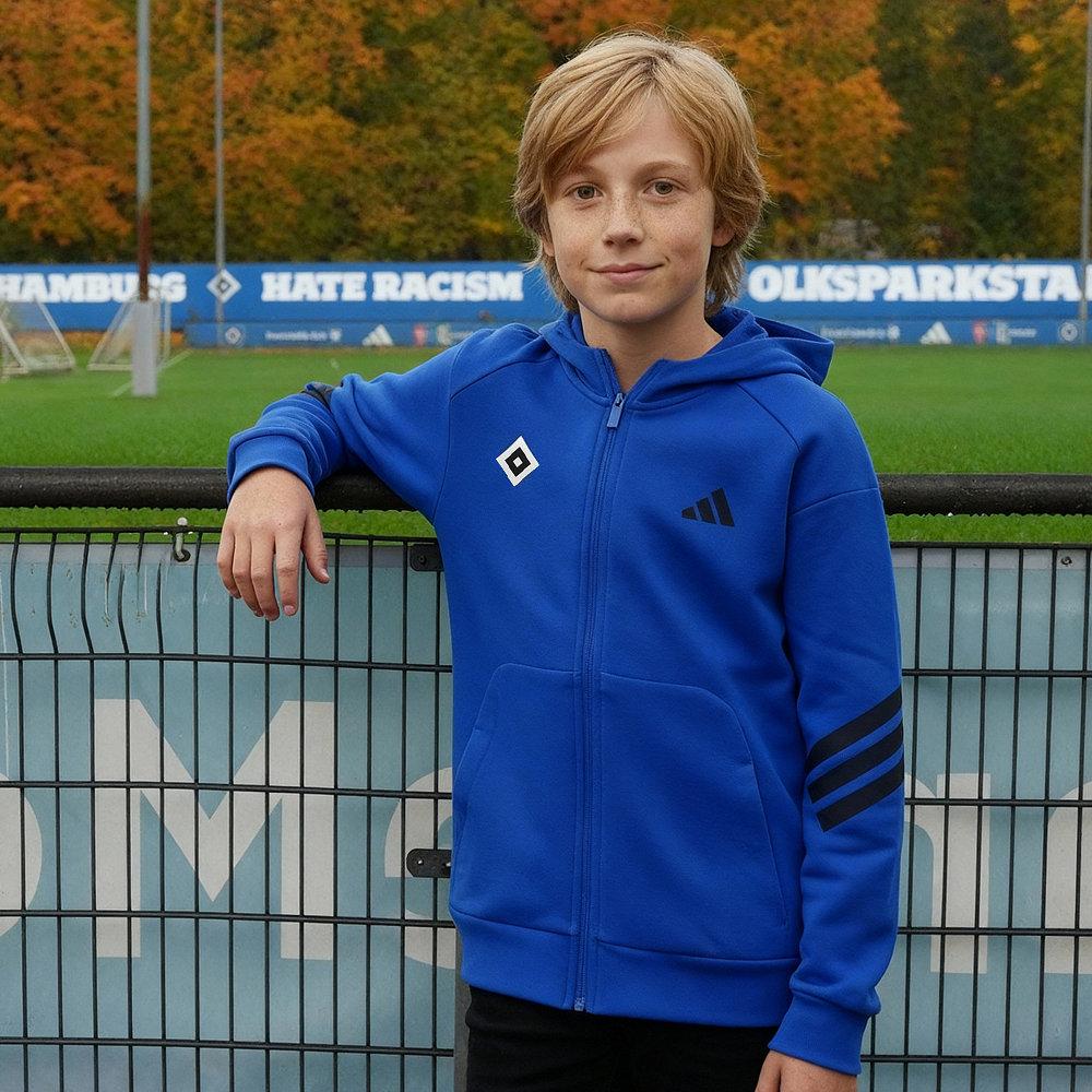 Sport trifft Streetstyle und heraus kommt die blaue adidas Sweatjacke Kids Future Icons vom HSV!