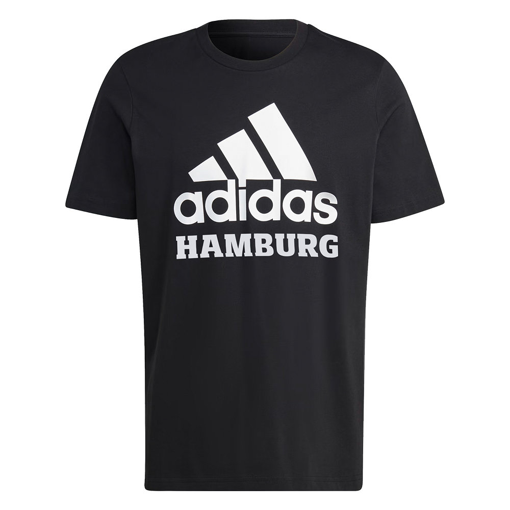 Egal, ob nach dem Gym oder in der Freizeit – das schwarze adidas T-Shirt vom HSV ist dein perfekter Begleiter für einen sportlichen Look. Das Shirt sorgt dank des großen adidas-Logos und Hamburg-Schriftzug vorne auf der Brust garantiert für einen Eyecatcher. Auf der Rückseite im Nacken sind noch eine HSV-Raute und ein schwarzes adidas-Logo.