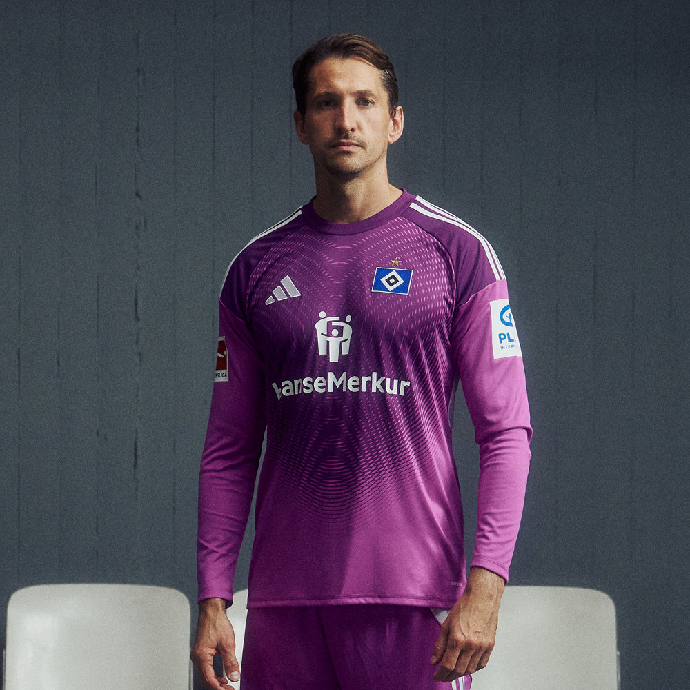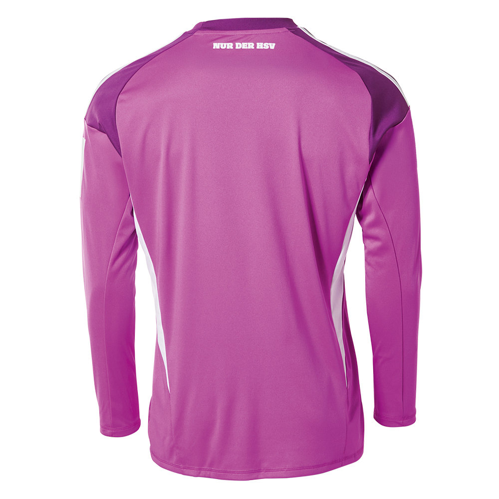 Das Torwarttrikot 2025/26 überzeugt in kräftigem Pink und besticht durch sein dynamisches Muster auf der Vorderseite. Die gestickte HSV-Raute mit Meisterstern und das rote adidas-Logo auf der Brust runden das Design optimal ab.